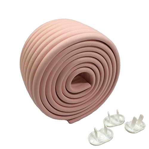 コンセントカバー 3個付! ケガ防止2Mコーナーガード・クッション 自由自在 角要らず! 自由に作れます 3M両面テープ付き! (サーモンピンク 薄桃)