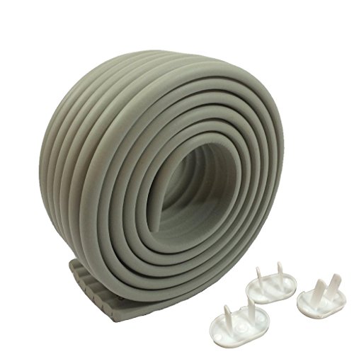 (メイドインコスモス)MADE IN COSMOS コンセントカバー 3個付 ケガ防止 2M コーナーガード クッション 自由自在 角要らず 自由に作れます 3M 両面テープ 付き (グレー 灰色)