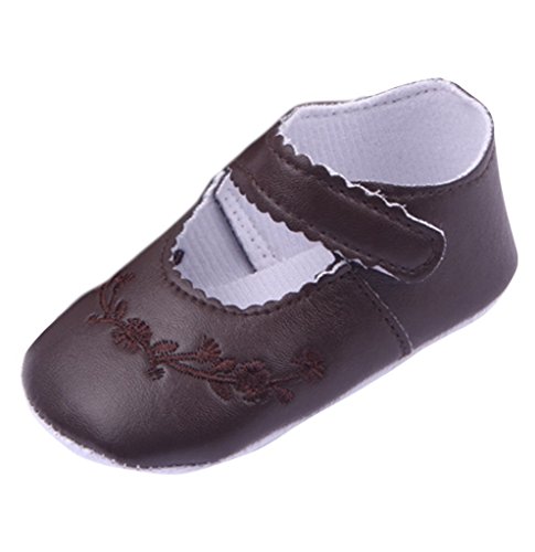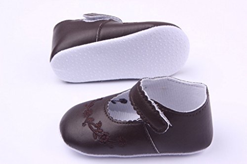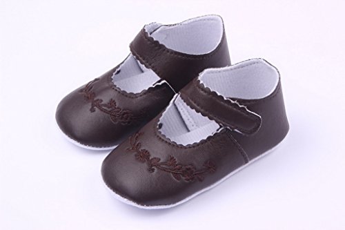 (ラボーグ) La Vogue ベビーシューズ 皮靴 PUフォーマル靴 ルームシューズ 赤ちゃん 新生児 出産祝い ベルクロ式 歩行サポート ソフトソール 刺繍 (11cm, 4コーヒー色)