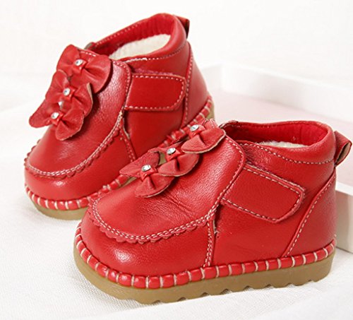 (ラボーグ) La Vogue ベビー 子供靴 ブーツ ボア付き 皮靴 赤ちゃん 新生児 出産祝い 歩行サポート 中綿シューズ 女の子 あったか 可愛い (12.2cm, Bレッド)