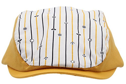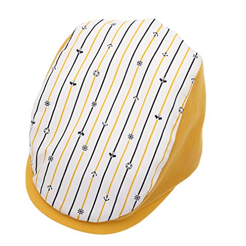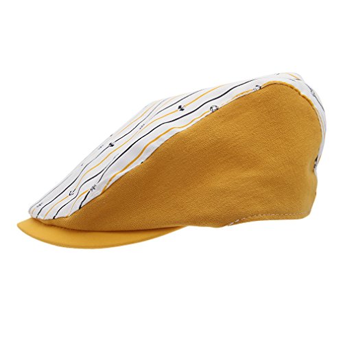(ラボーグ) La Vogue 赤ちゃん 帽子 キッズ ハンチング ベレー帽 ハット 子どもキャップ 男の子 女の子 つぼ短い 可愛い お出かけ 紫外線対策 (Fしま柄 イエロー)
