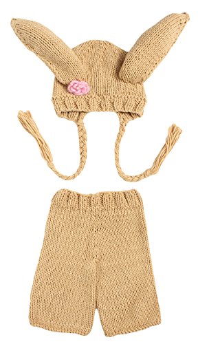(ラボーグ) La vogue ベビー 新生児 記念写真 撮影用衣装 赤ちゃん ウェア ニット帽 コスチューム 耳付き 着ぐるみ 防寒 誕生日 寝相アート 祝い (A兎・ベージュ)