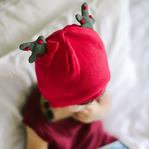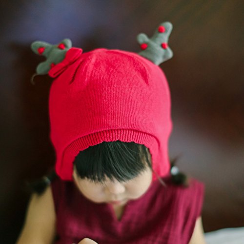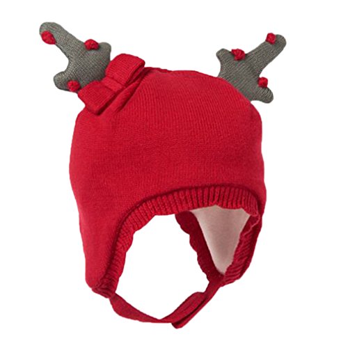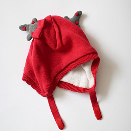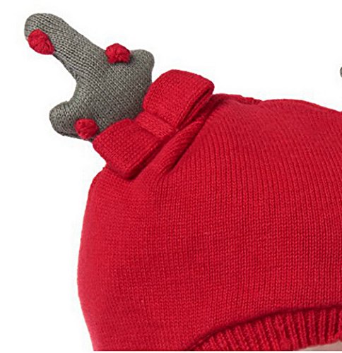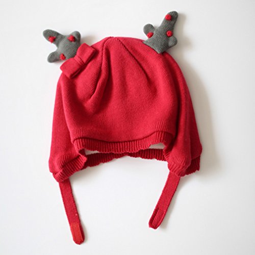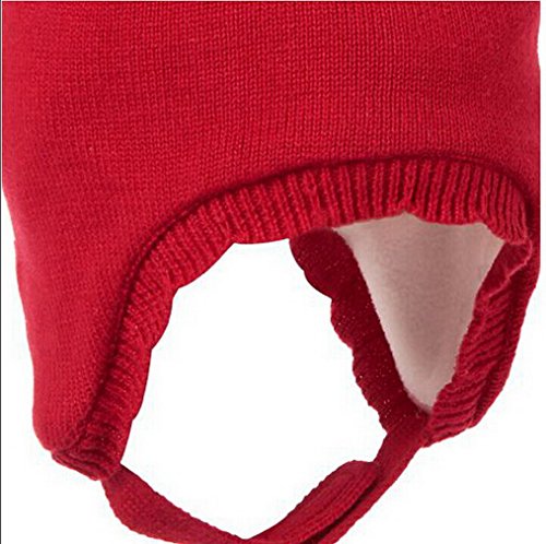 (ラボーグ) La vogue キッズ ベビーニット帽 ニットキャップ ワッチ帽子 子ども 赤ちゃん 耳あて付き クリスマス 出産祝い あったか防寒 レッド (S)