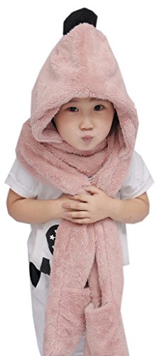 (ラボーグ) La vogue キッズ帽子 マフラー 手袋セット 一着OK ぬいぐるみキャップ 帽子耳あて モコモコ 防寒対策 ボンボン 可愛い (Gピンク)