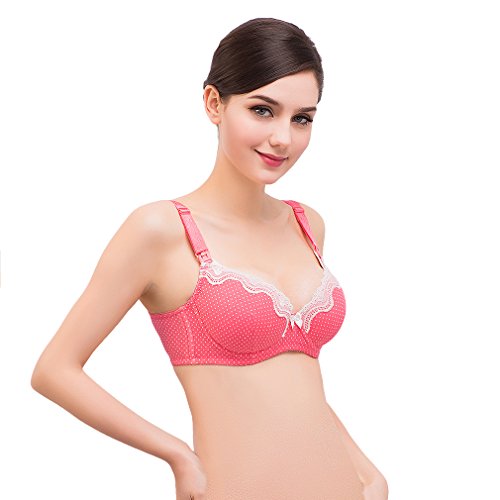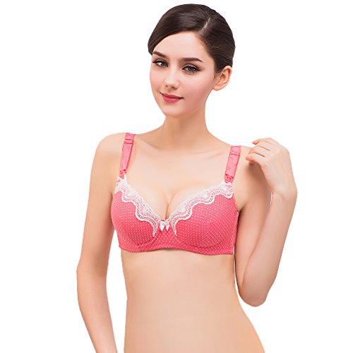 (ラボーグ) La vogue 授乳ブラジャー マタニティウェア 婦人 妊婦用 レディース インナー下着 ワイヤ入り 簡単に授乳タイプ 着心地よく ドット柄 (80B, 2レッド)