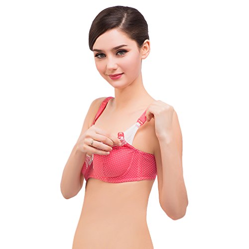 (ラボーグ) La vogue 授乳ブラジャー マタニティウェア 婦人 妊婦用 レディース インナー下着 ワイヤ入り 簡単に授乳タイプ 着心地よく ドット柄 (90B, 2レッド)