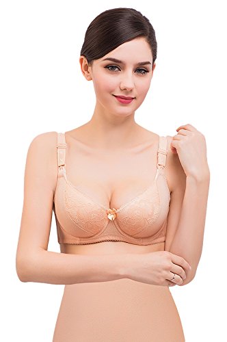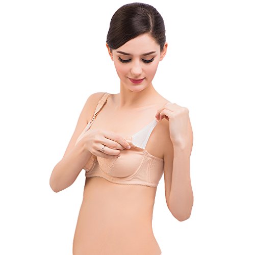 (ラボーグ) La vogue 授乳ブラジャー マタニティウェア 婦人 妊婦用 ワイヤ入り レディース インナー下着 簡単に授乳タイプ レース (75C, 肌色)