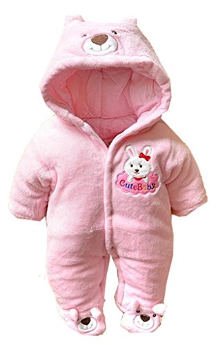 (ラボーグ)La vogue 新生児 ベビー服 綿服 コスチューム 衣装 足つきとフード付 長袖 子供用 着ぐるみ 赤ちゃん もこもこ カバーオール 可愛い 62 ウサギ柄 ピンク
