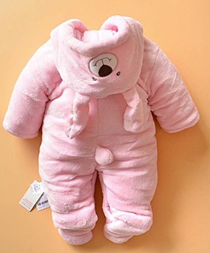 - 赤ちゃんの防寒、保温に、足つき、フードつき、かわいい着ぐるみタイプの中綿入りの暖かいカバーオールです。