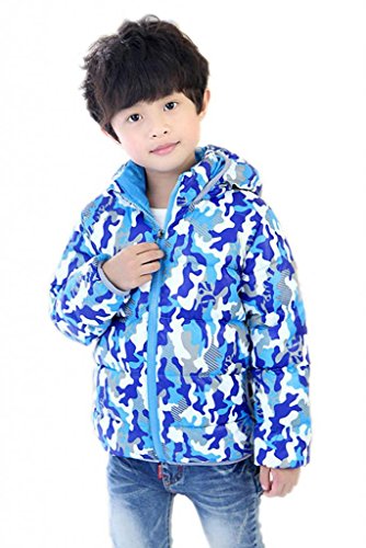(ラボーグ) La vogue カジュアル アウターウエア ベビー服 ダウンジャケット ガールズコート キッズジャンパー フードが付き 迷彩柄 子供服 上着 女の子 男の子 冬着綿服 ブルー 130サイズ