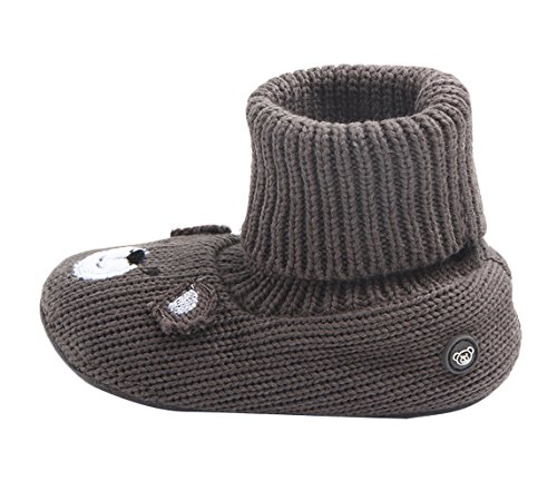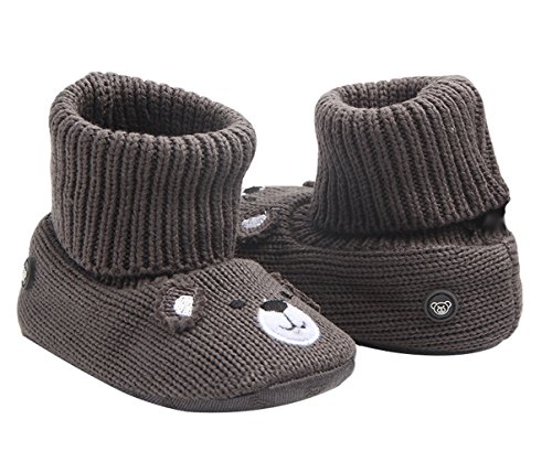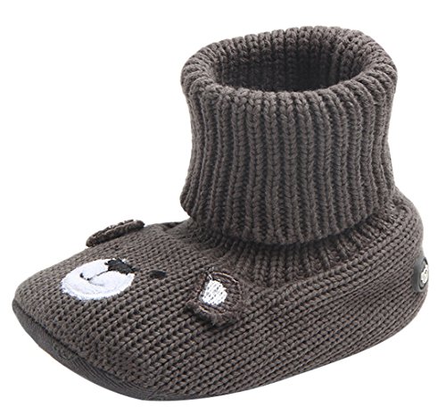 (ラボーグ)La Vogue ベビーシューズ ニット ブーツ キッズ ファーストシューズ ルームシューズ 子供靴 赤ちゃん 新生児 歩行サポート 男の子 女の子 防寒 ダークコーヒー色 13cm