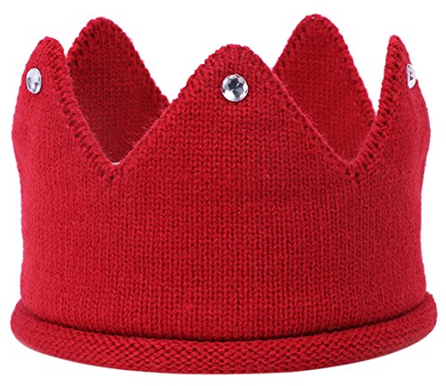 (ラボーグ)La Vogue 赤ちゃん ベビー ヘアバンド ニット 王冠 クラウン 髪飾り 帽子 キッズ 子供 新生児 キャップ 撮影 誕生日 結婚式 出産祝い レッド