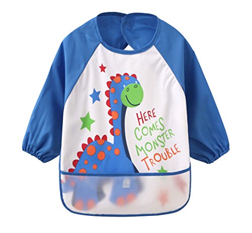 (ラボーグ)La Vogue ベビー 食事用 長袖 エプロン 子供 幼児 スモック ポケット 赤ちゃん よだれかけ ビブ スタイ 男の子 女の子 幼稚園 入園 可愛い ブルー M