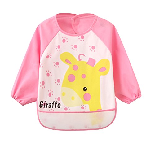 (ラボーグ)La Vogue ベビー 食事用 長袖 エプロン 子供 幼児 スモック ポケット 赤ちゃん よだれかけ ビブ スタイ 男の子 女の子 幼稚園 入園 可愛い ピンク S