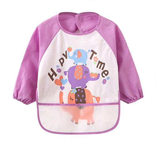 (ラボーグ)La Vogue ベビー 食事用 長袖 エプロン 子供 幼児 スモック ポケット 赤ちゃん よだれかけ ビブ スタイ 男の子 女の子 幼稚園 入園 可愛い パープル S
