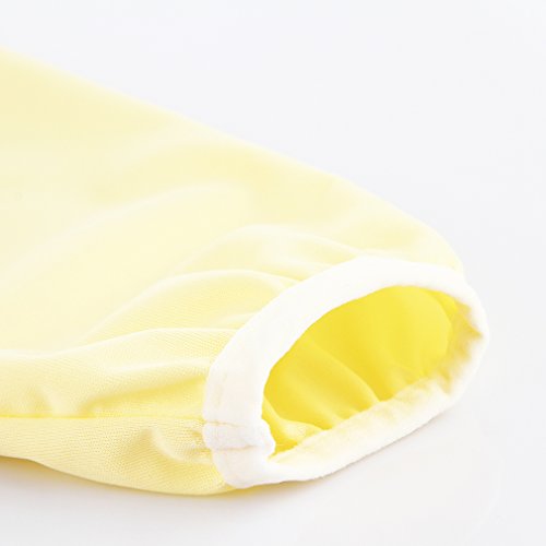 - 後ろはマジックテープなので首回り、おなか回りの調整が簡単にできます。長袖タイプなので、お洋服の肩や袖を汚れから守ってくれます。