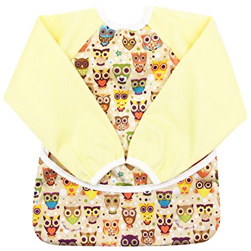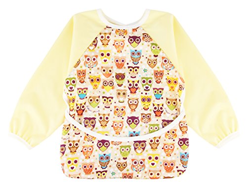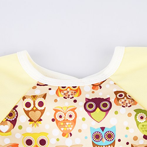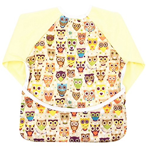 (ラボーグ) La Vogue ベビー 食事用 長袖 エプロン 子供 幼児 スモック スタイ 防水ビブ ポケット付き 赤ちゃん よだれかけ 男の子 女の子 可愛い フクロウ柄