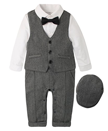 (ラボーグ)La Vogue 子供服 フォーマル スーツ ベビー ロンパース 長袖 ベスト 帽子 3点セット カバーオール 正装 赤ちゃん 男の子 結婚式 お宮参り グレー 80