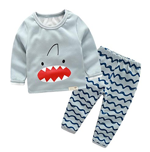 (ラボーグ)La Vogue 子供服 上下セット キッズ 長袖Tシャツ トップス パンツ パジャマ 裏起毛 寝巻き 男の子 女の子 ルームウェア サメ柄 可愛い 秋冬 ライトブルー 100cm