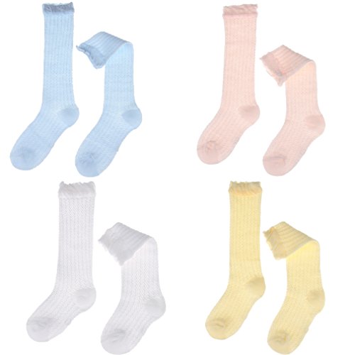 (ラボーグ)La Vogue ベビー キッズ 靴下 ソックス 女の子 子供 ハイソックス かわいい ガールズ 膝丈 スクール 通学 ニーハイ メッシュ 4足セット L