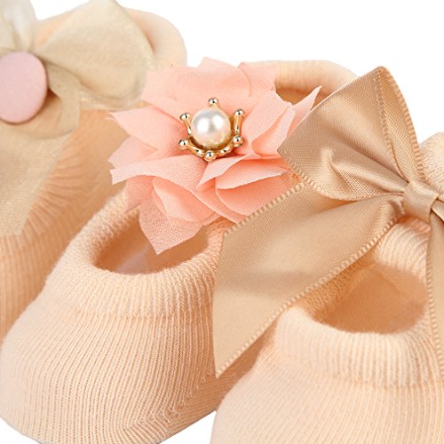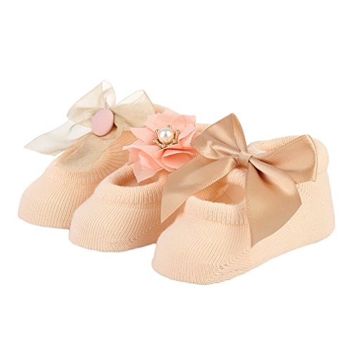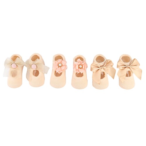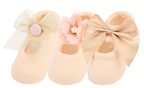 (ラボーグ)La Vogue ソックス 靴下 ベビー キッズ 蝶結び 可愛い ルーム用 新生児 赤ちゃん ファーストシューズ ゆかいた専用 女の子 秋冬 3足組 イエロー M