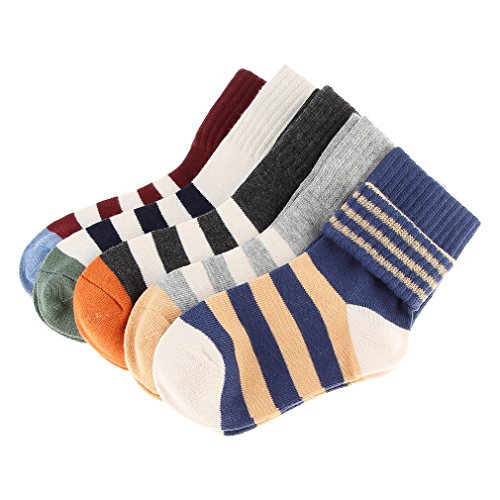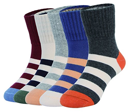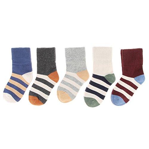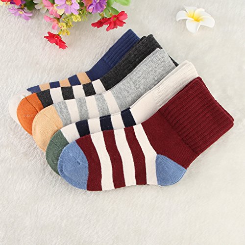 (ラボーグ)La Vogue キッズ 子供 靴下 ソックス クルー丈 女の子 男の子 ジュニア 5足セット ボーダー柄 通学 スクールソックス スポーツ カジュアル L