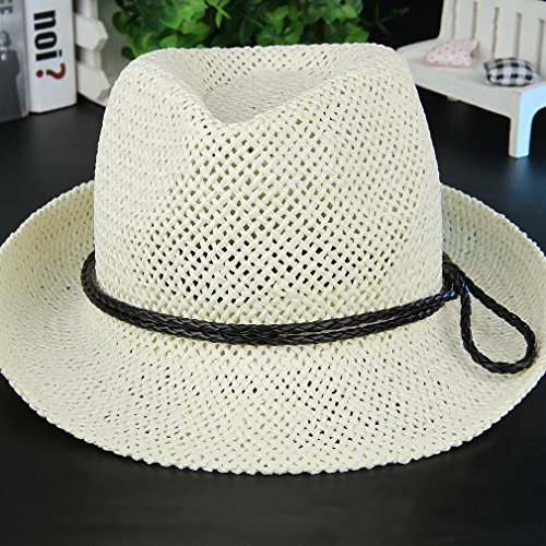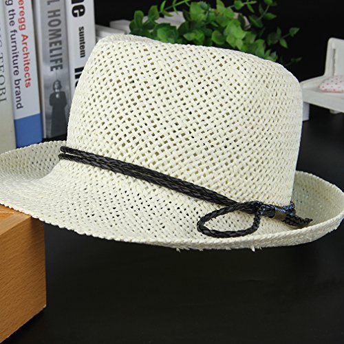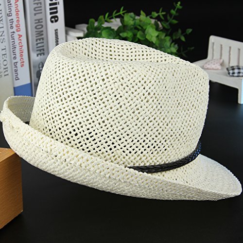 (ラボーグ)La Vogue キッズ サンバイザー 子供 麦わら帽子 つば広 ストローハット 中折れハット 男の子 女の子 紳士帽 日焼け UVカット 通学 遠足 ホワイト