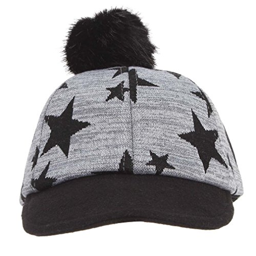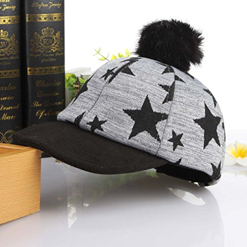 (ラボーグ)La Vogue キッズ キャップ 帽子 ポンポン付き ベースボール 野球帽 ベビー 赤ちゃん ハット 子供用 秋冬 キャスケット 星柄 かわいい 防寒 ブラック