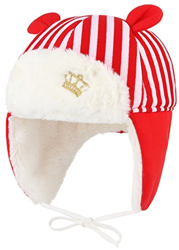 (ラボーグ)La Vogue ベビー帽子 パイロット帽 男の子 女の子 キャップ 飛行帽 キッズ 子供 耳あて 裏起毛 防寒 保温 防風 可愛い アウトドア スキー レッド
