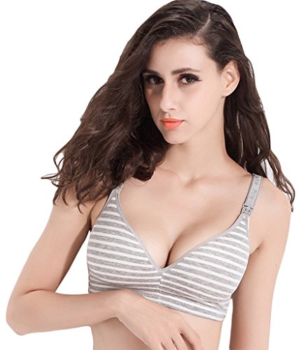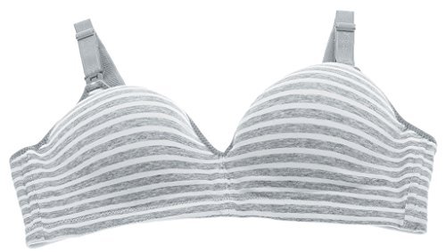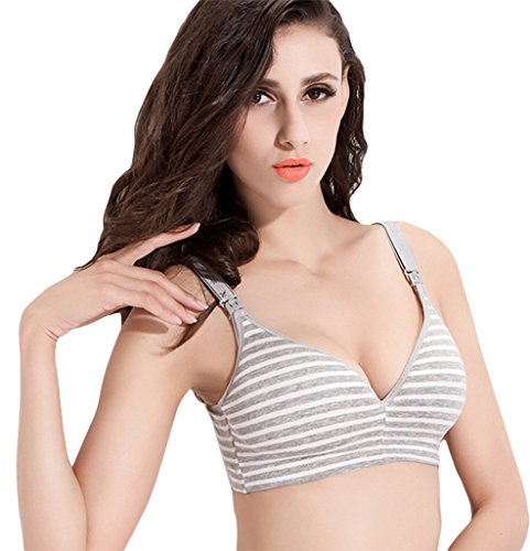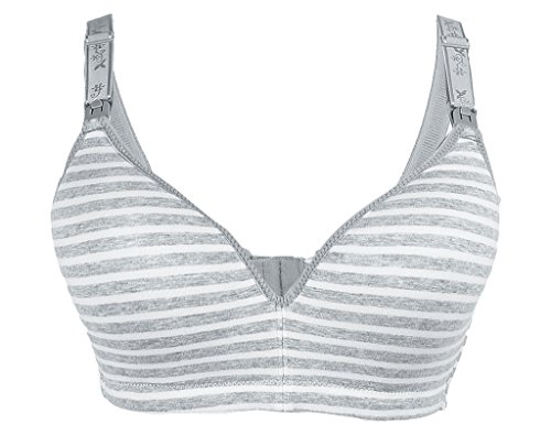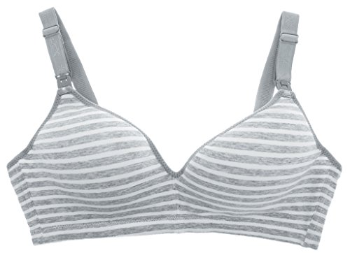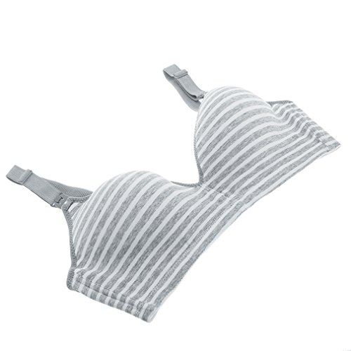 (ラボーグ)La Vogue レディース 授乳ブラジャー ストラップオープン マタニティ 婦人 妊婦用 ノンワイヤー インナー下着 産前 産後ブラ 授乳便利 縞柄 グレー 80B