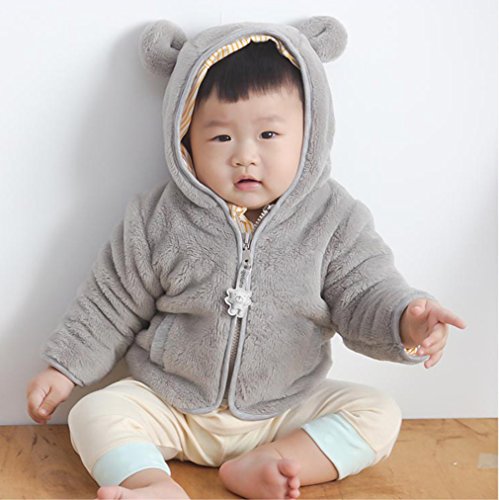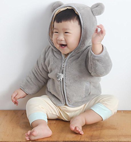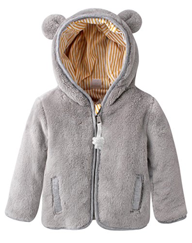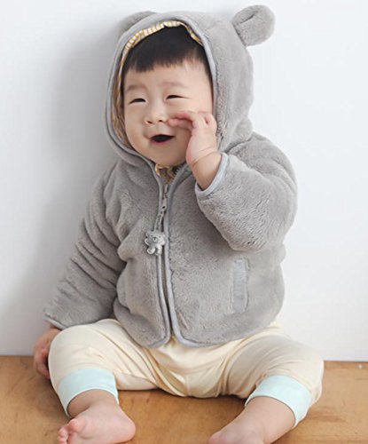 (ラボーグ)La Vogue ベビー コート 暖かい ジャケット 熊 フード付き ジッパー もこもこ 可愛い 保温 柔らかい パーカー 動物ぬいぐるみ キッズ 90 グレー