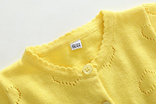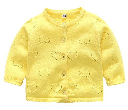 (ラボーグ) La Vogue キッズ ニット セーター 子供服 女の子 長袖 カーディガン かわいい ベビー コート アウター ジャケット 上着 ハート柄 秋冬 イエロー 90