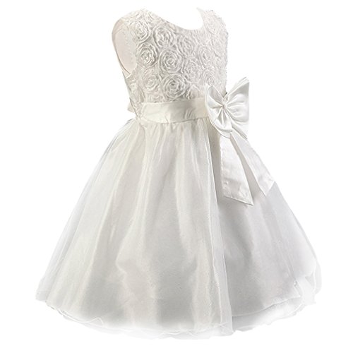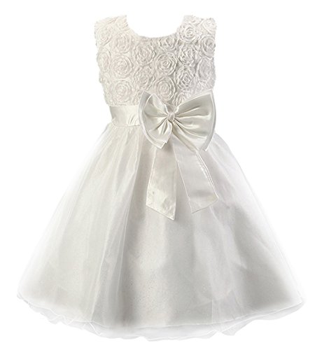 (ラボーグ)La Vogue 子供ドレス キッズ ワンピース 女の子 スカート ガールズ フォーマルドレス 発表会 結婚式 花嫁介添人 ベビー お嬢様 リボン飾り ホワイト 100