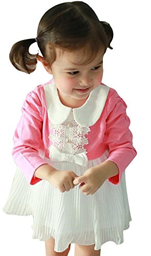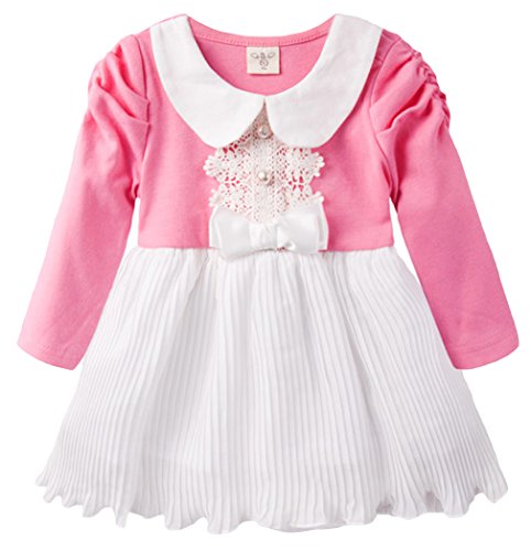 (ラボーグ)La Vogue キッズ 女の子 長袖 ワンピース 子供服 フォーマルドレス ベビーガールズ 丸襟 フレア スカート 発表会 結婚式 入園式 キュート ピンク 80