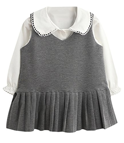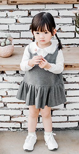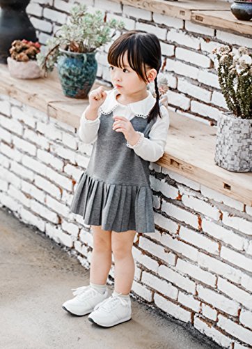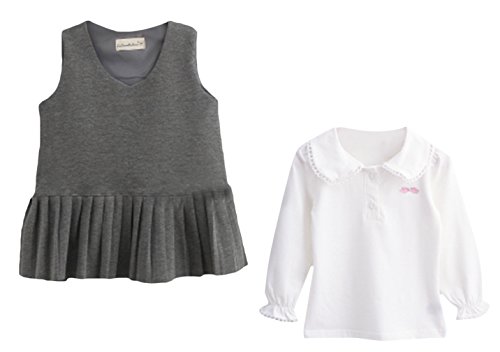 (ラボーグ)La Vogue 子供服 ワンピース キッズ 女の子 ドレス フォーマル レース丸襟 ブラウス セット ベビー ガールズ スカート 発表会 結婚式 入園式 グレー 100