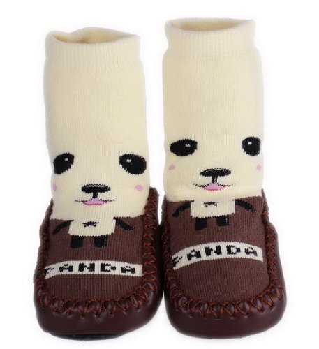 (ラボーグ)La vogue ベビー靴 靴下 ベビーソックス 滑り止め 可愛い刺繍図案 出産祝い 6ヶ月から24ヶ月のベビーへ 長さ12cm ブラウン