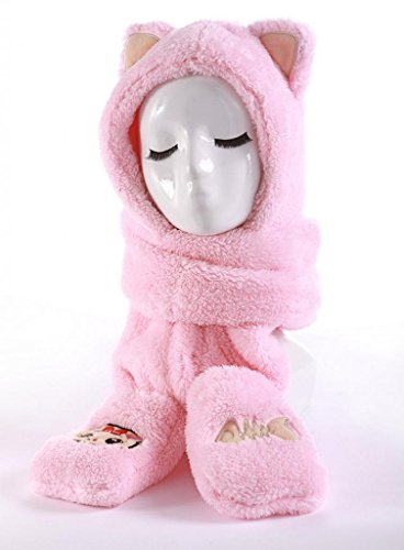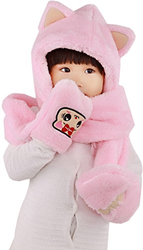 (ラボーグ) La vogue 冬 防寒 キッズ 帽子耳あて フリースキャップ 子供マフラー ベビー手袋 耳付き モコモコ 厚手 女の子 3WAY ピンク