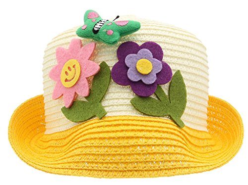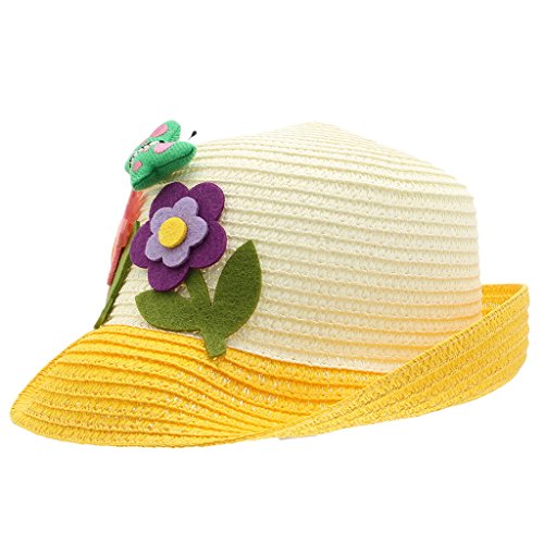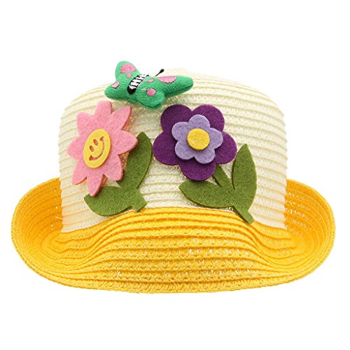(ラボーグ)La vogue キッズ帽子 子供サマーハット サンバイザー つば広ハット UVカット 蝶結び飾り 女の子 赤ちゃんキャップ アウトドア カジュアル (2イエロー)