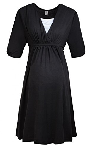 (ラボーグ)La vogue シンプル マタニティ ワンピース プリンセスドレス 五分丈袖 パフスリーブ Vネック 無地タイプ ひざ丈 妊婦服 普段着 オフィスもOK ブラック Sサイズ