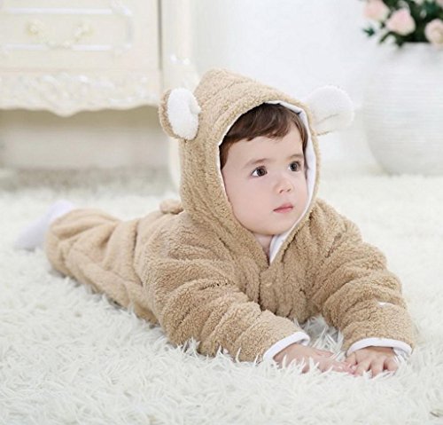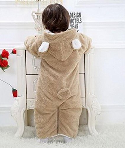 (ラボーグ)La vogue モコモコ ベビー服 ベビーカバーオール ロンパース アニマル 可愛い動物着ぐるみ 新生児 冬着 0-2歳の赤ちゃんへ ブラウンクマ 90サイズ