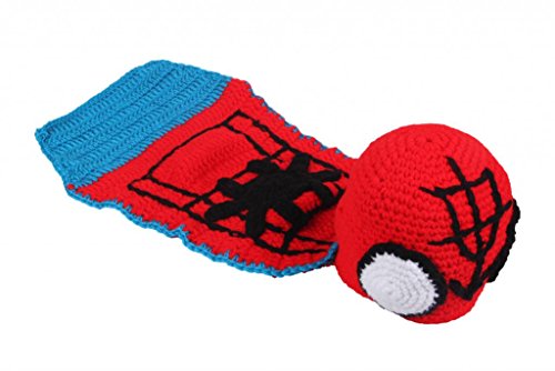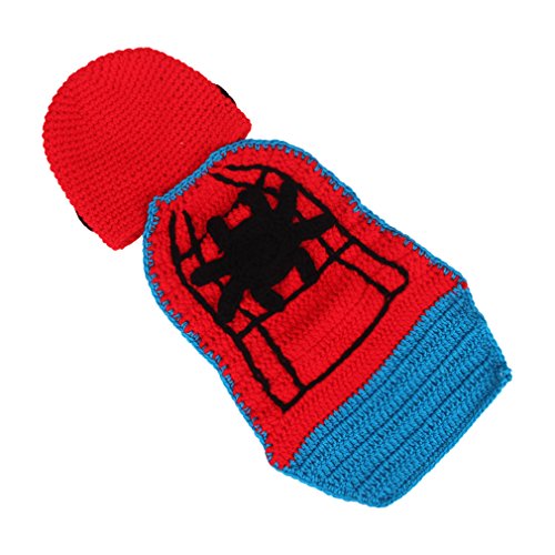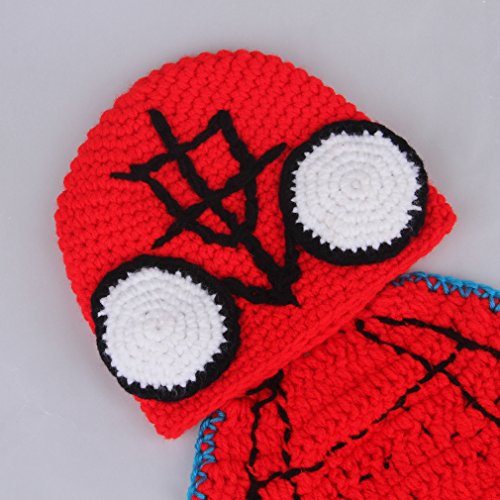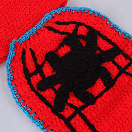 (ラボーグ)La vogue ニット帽子付ベビー服 着ぐるみ ヘアバンド付 おむつ 毛糸素材制コスチューム 寝相アート 新生児 赤ちゃん 出産祝い スパイダーマン