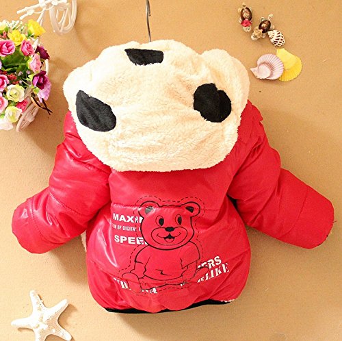 (ラボーグ)La vogue カジュアル アウターウエア ベビー服 綿服ジャケット 綿入れコート ジャンパー くまちゃん柄 子供服 上着 女の子 新生児 冬着 レッド 80サイズ