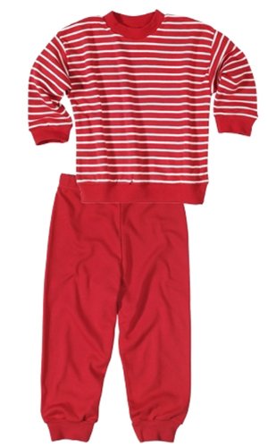 LIVING CRAFTS オーガニックコットン 100% キッズ スウェットスーツ レッド ストライプ サイズ 104 ( 100 - 110 )