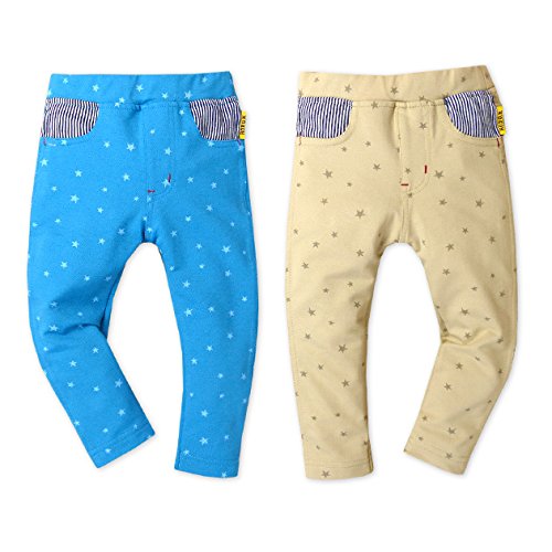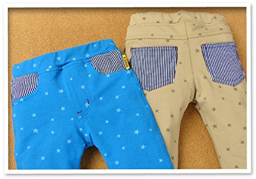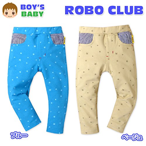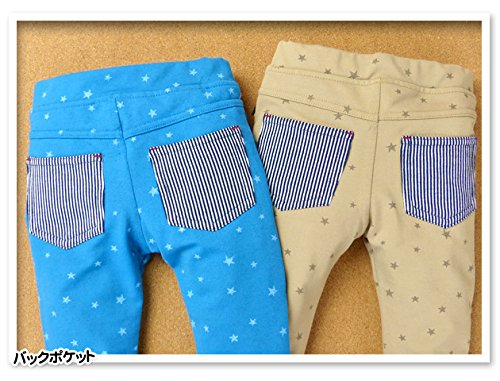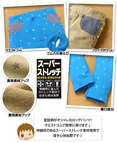 ベビー服 男の子 ロング パンツ ボトム スーパーストレッチ 星総柄 ストライプ柄 フェイクポケット タグ 男児 ベビー (1.ブルー/90cm)