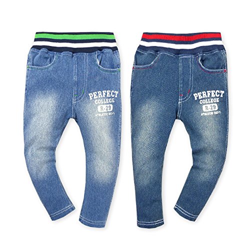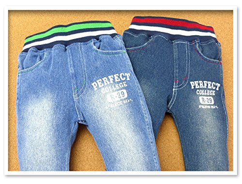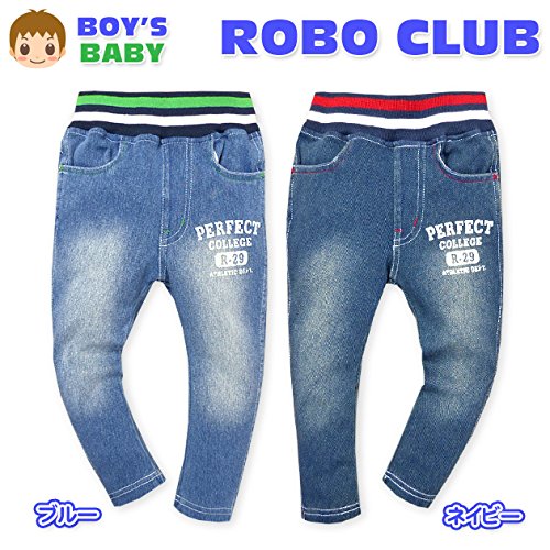 ベビー服 男の子 ロング パンツ ボトム デニムニット ストレッチ ロゴプリント ウォッシュ加工 男児 ベビー (1.ブルー/95cm)