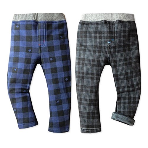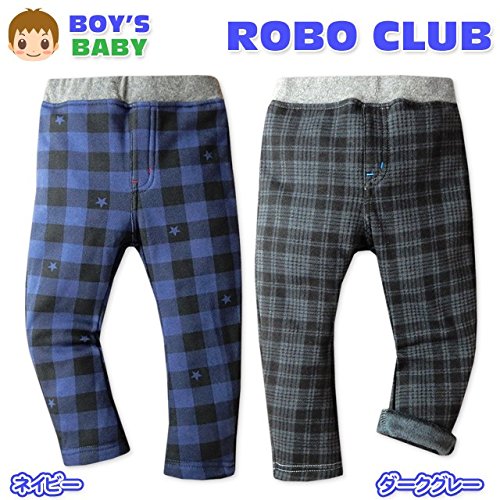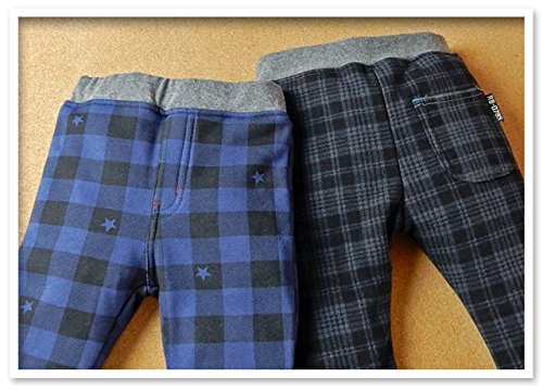 (ネイビー/95cm)ベビー服 男の子 ロング パンツ ボトム ニット 裏シャギーボア チェック柄 星柄 ストレッチ ウエストゴム 男児 ベビー