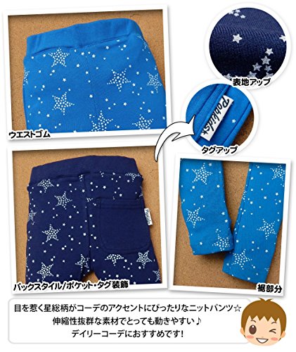 (ブルー/80cm)ベビー服 男の子 ロング パンツ ニット ボトム ウエストゴム 星総柄 タグ 男児 ベビー