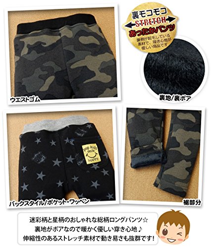 (迷彩/90cm)ベビー服 男の子 ロング パンツ 裏ボア ワッペン装飾 迷彩 星 男児 ベビー