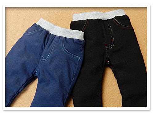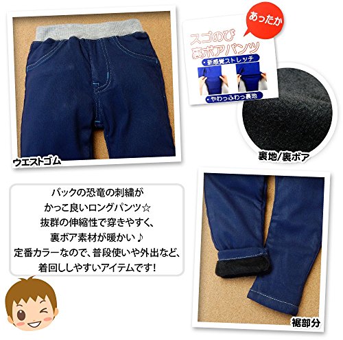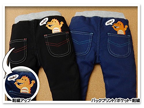 (ネイビー/95cm)ベビー服 男の子 ロング パンツ 裏ボア レーヨン混 恐竜 刺繍 男児 ベビー