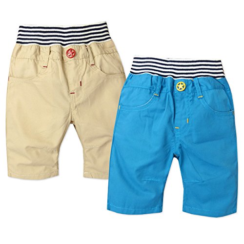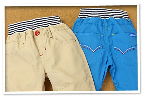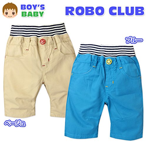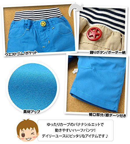 ベビー服 男の子 ハーフ パンツ ボトム バナナシルエット ボーダー柄 ワッペン装飾 カラーステッチ 男児 ベビー (2.ブルー/90cm)